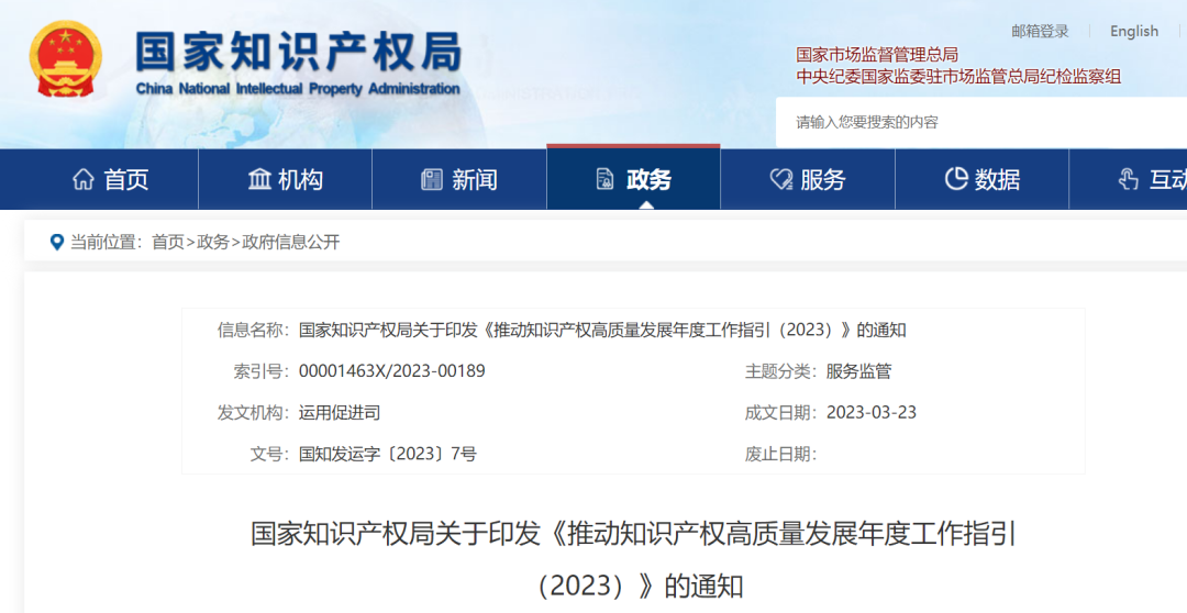 推動(dòng)知識(shí)產(chǎn)權(quán)高質(zhì)量發(fā)展年度工作指引(2023)